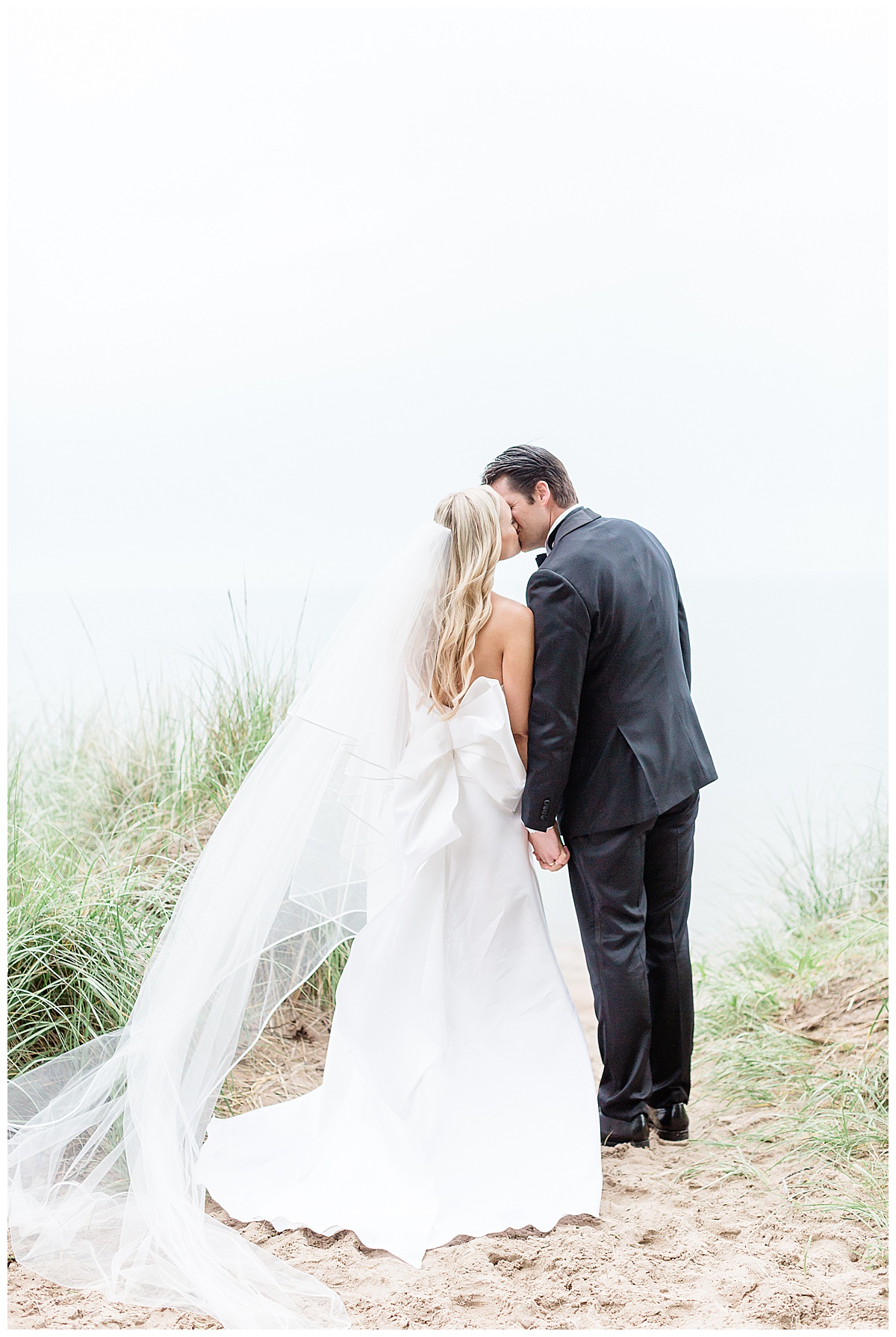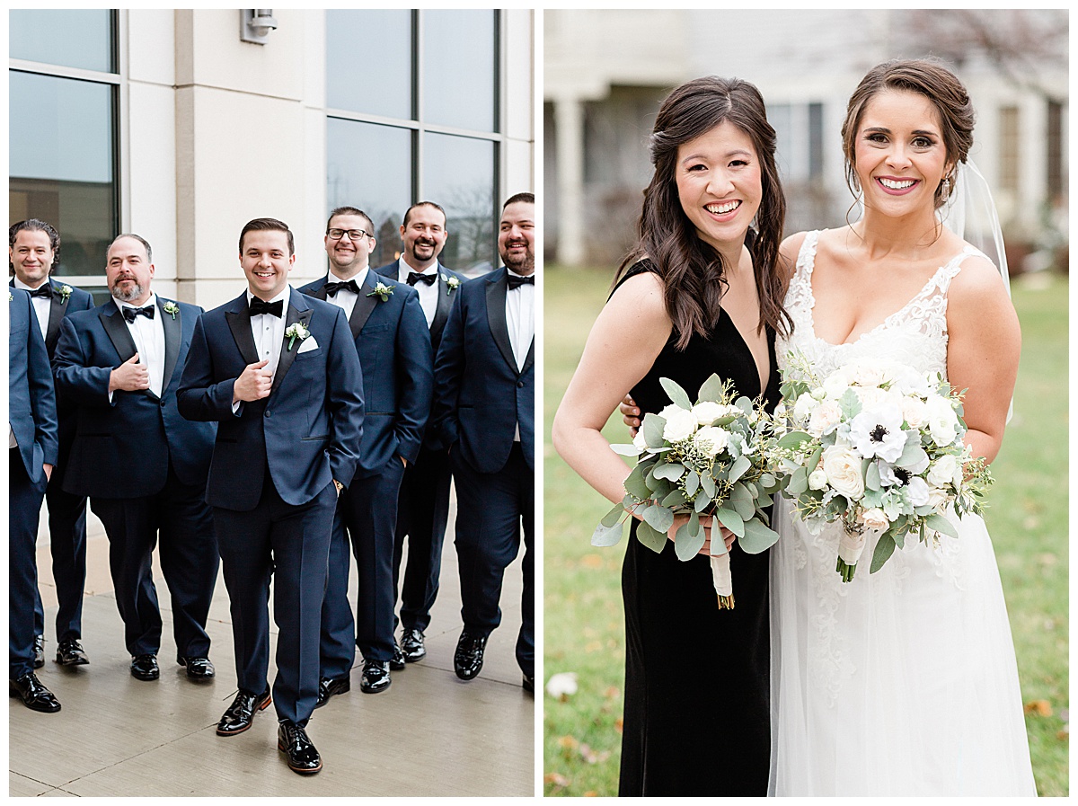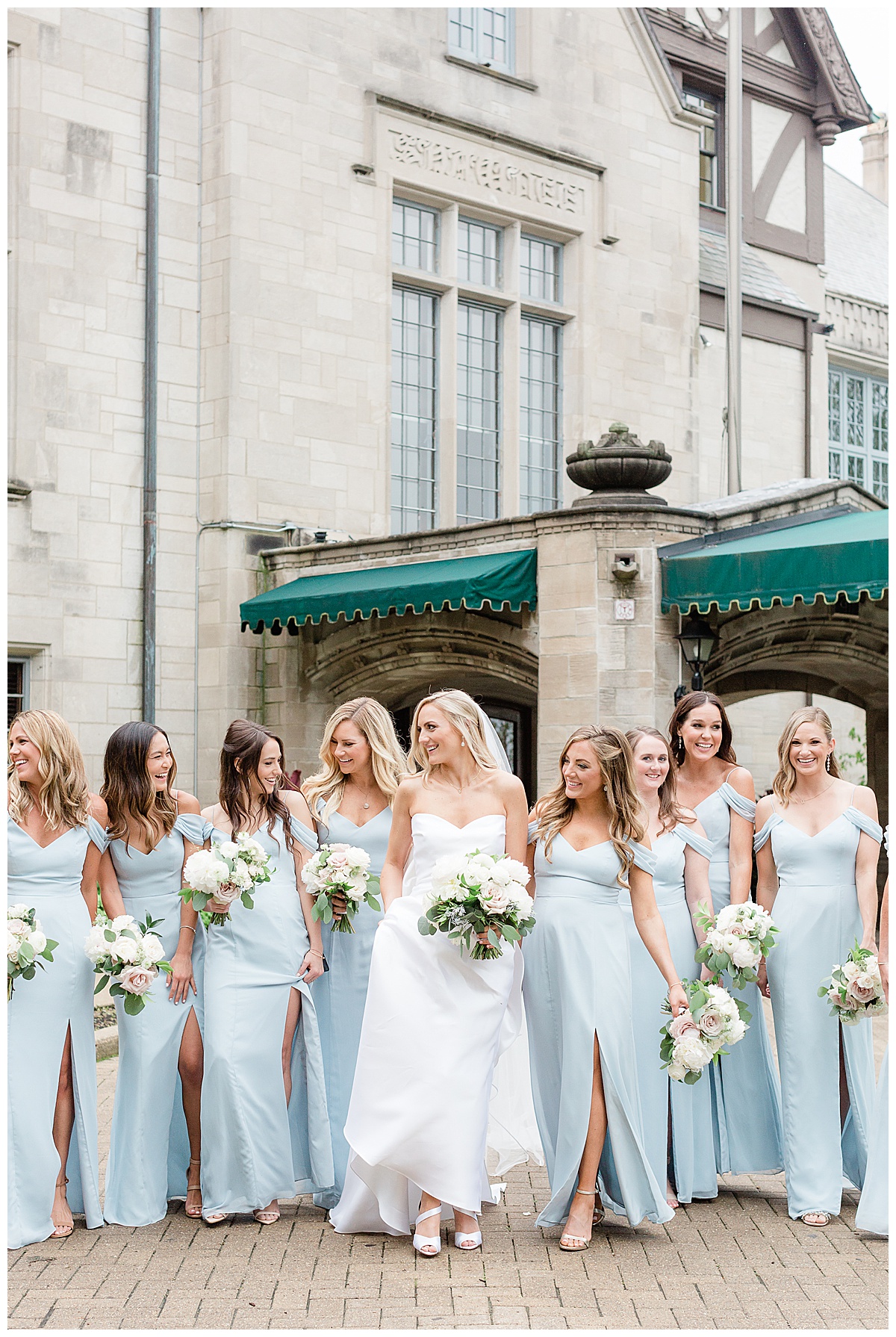How We Handled It: Bridesmaid photos were scheduled for early afternoon, before the ceremony. Jamie also wanted photos with her immediate family. Because of the rain, we relied on our backup plan: using the gorgeous East Porch inside the Michigan Shores Club.