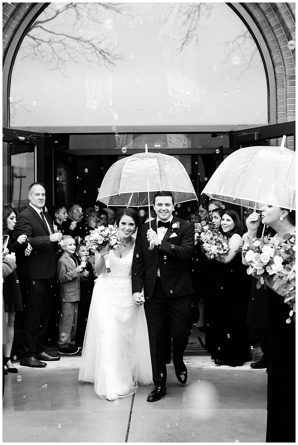 After the ceremony, my team passed out clear umbrellas to protect bridesmaids hair and makeup as Taylor and Andy exited the church. Those exit photos are some of my favorites!