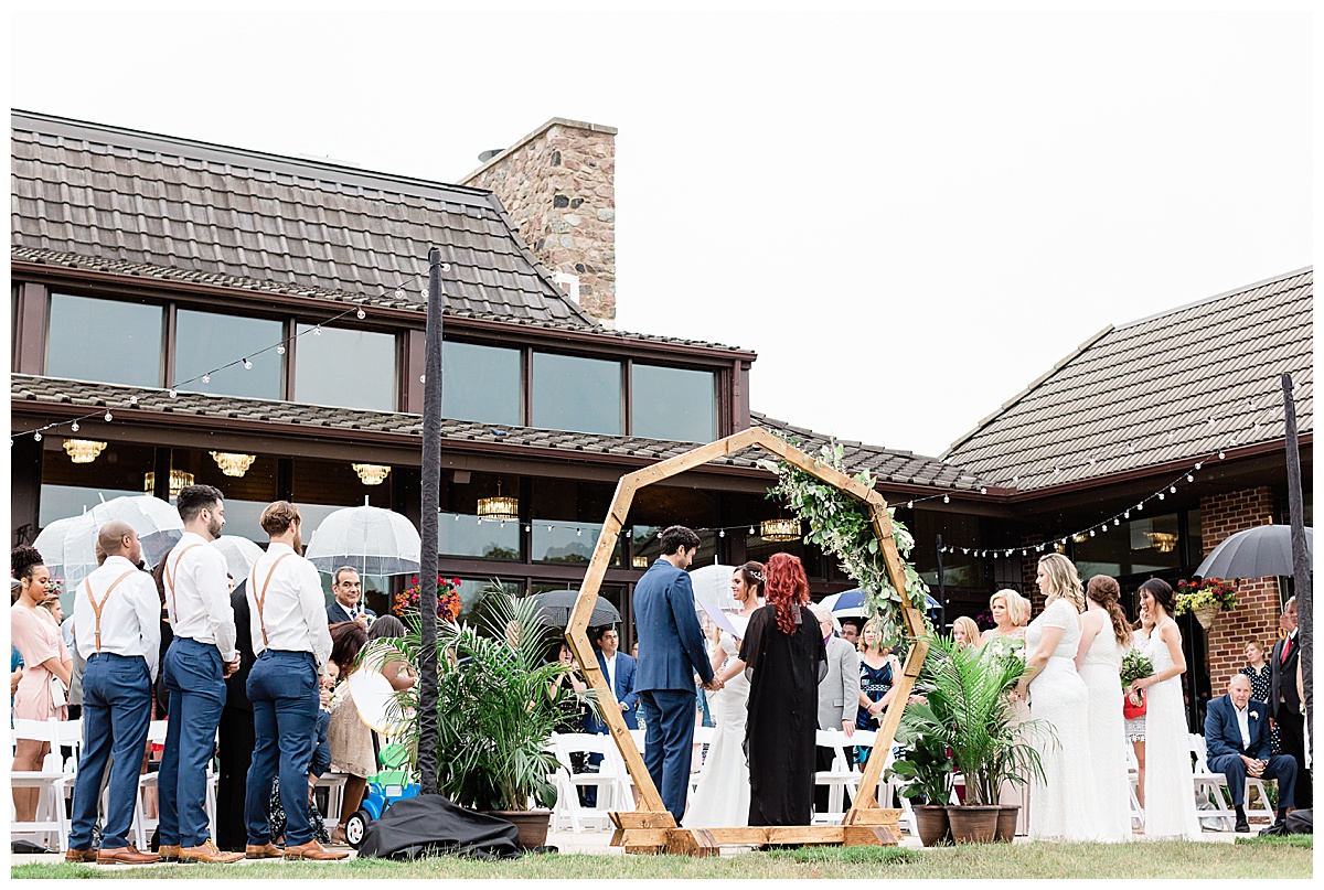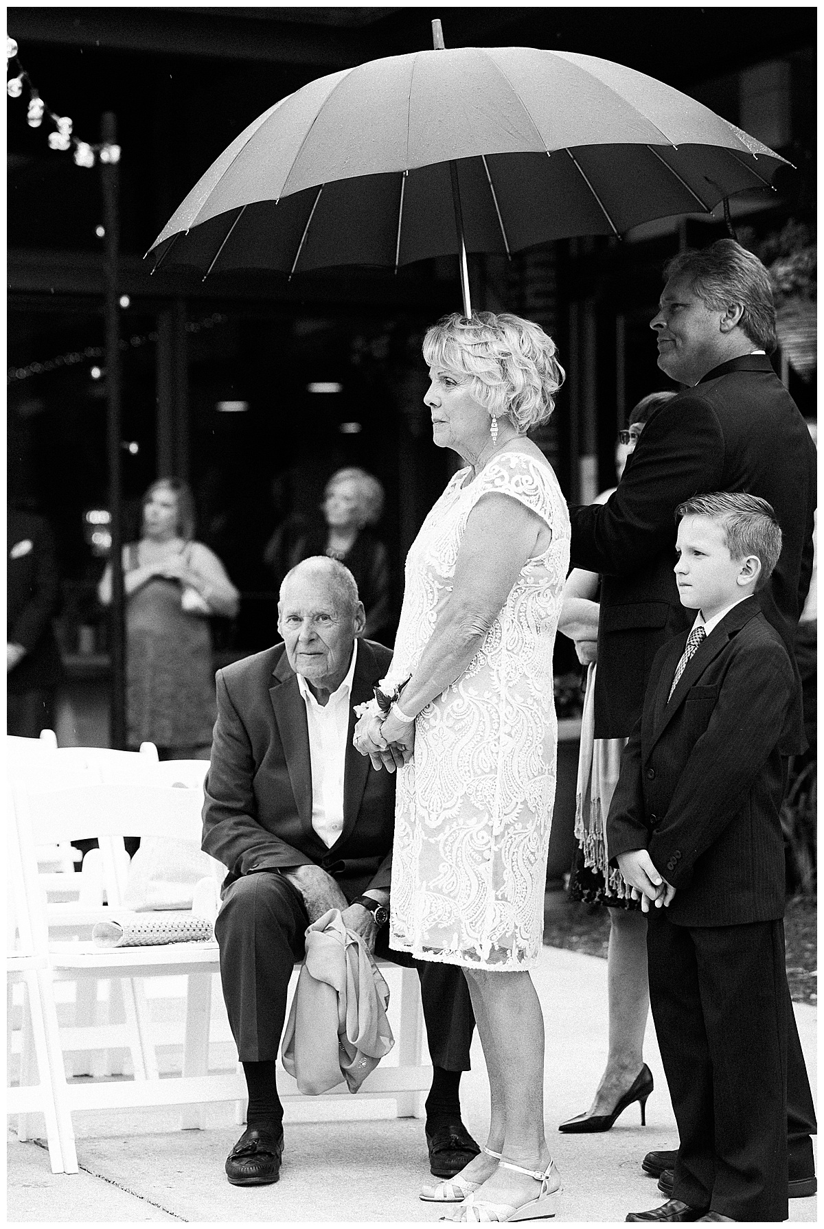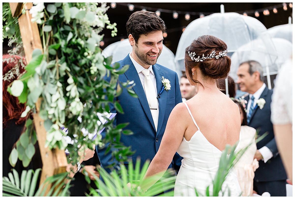 When I saw guests starting to move to avoid getting wet, I quickly worked with Nicole & Adrian’s planner, Sarah Kathleen Events. Together we passed out my collection of umbrellas, so guests could stay at their seats and witness the vows. Eventually, the sprinkles stopped and these two shared their first married kiss!