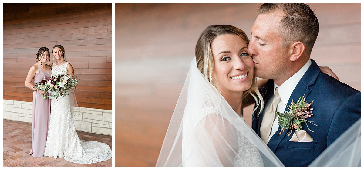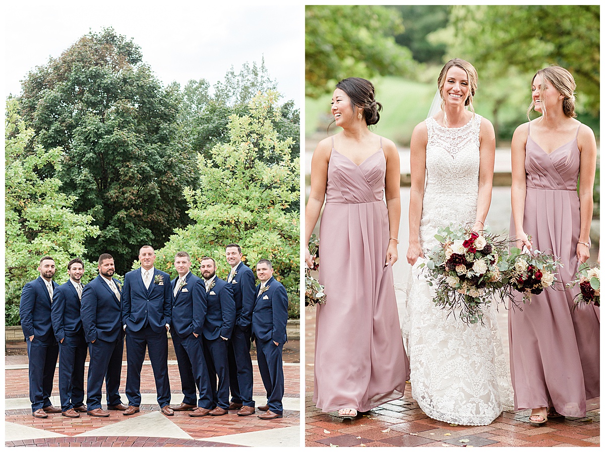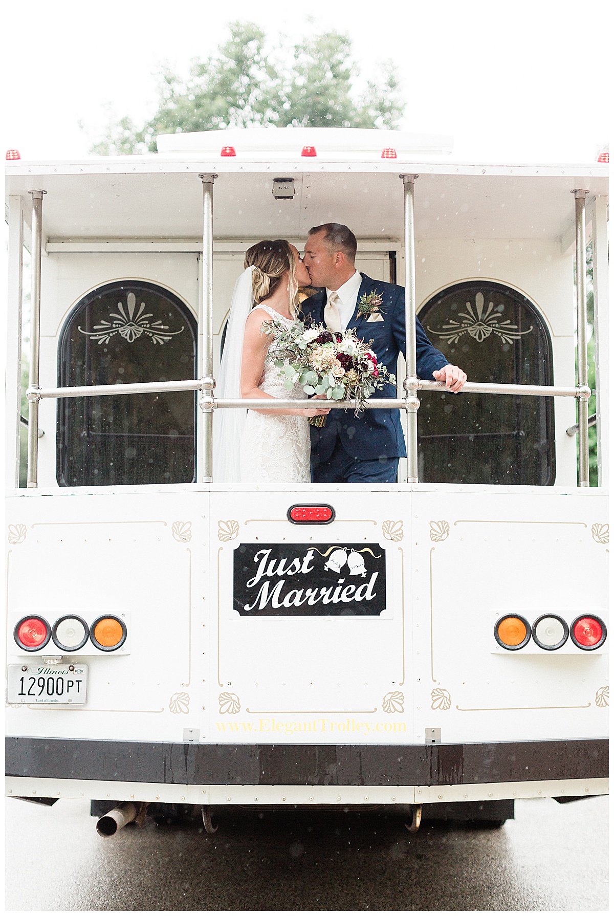 The reception building at Independence Grove also had a few covered outdoor areas. We used these for portraits of Megan and Scott, their bridesmaids, and their groomsmen. We also took a few cute pictures on their wedding trolley! When the rain let up, we had plenty of options nearby for group pictures.