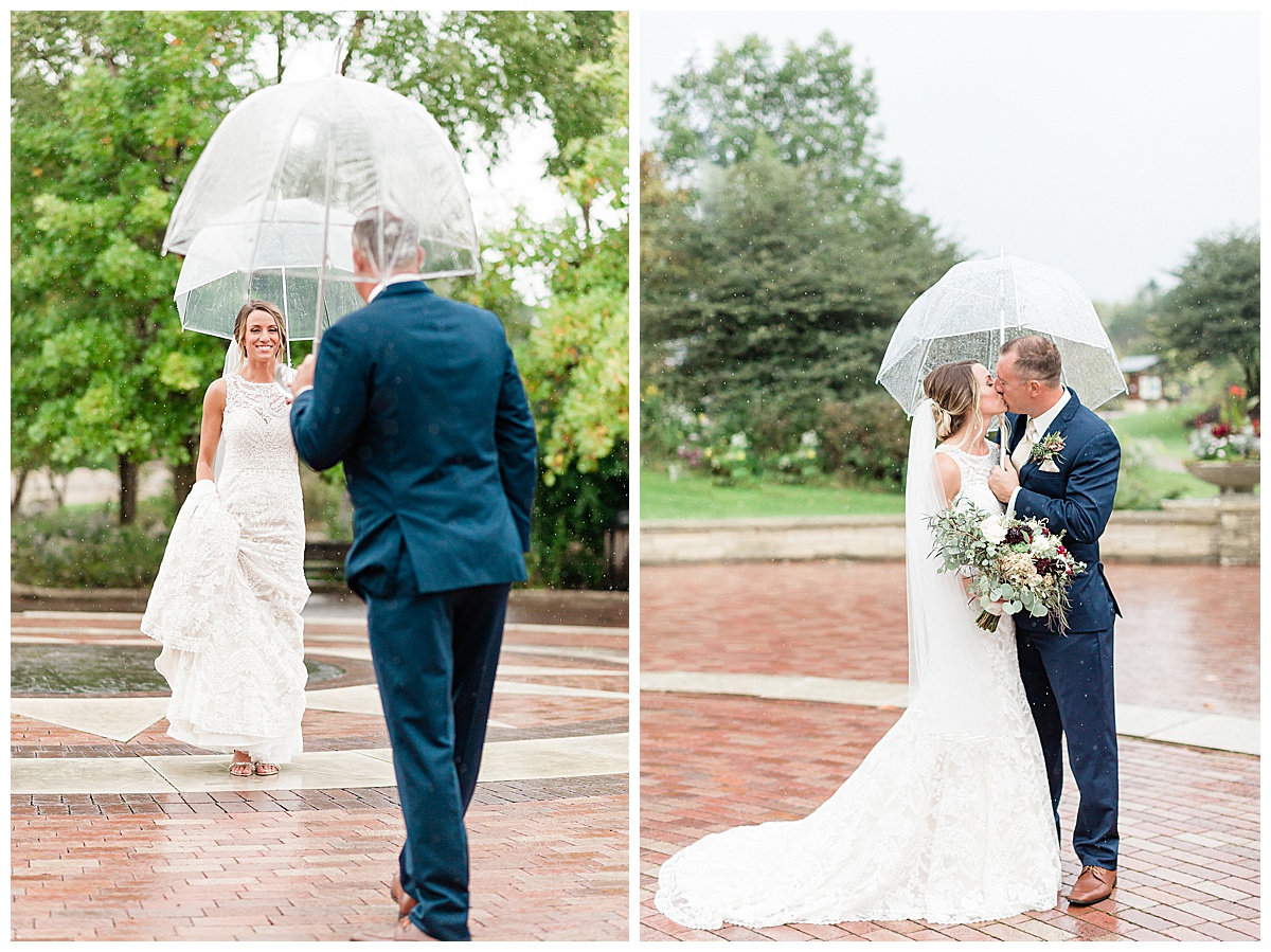 How We Handled It: It was pouring as we drove to Megan and Scott’s first look. We waited in the car, and after a few minutes the rain became less intense. Megan and Scott decided to still do their first look outdoors, using the clear umbrellas I provided.