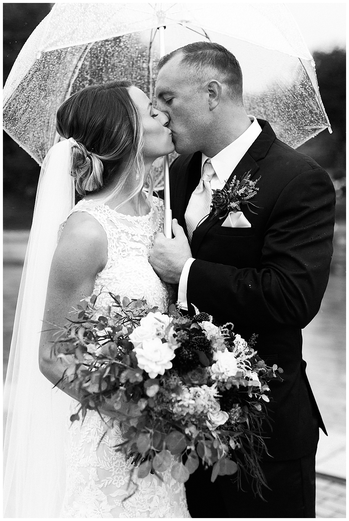 Looking back, Megan says: “I absolutely LOVE our photos in the rain. Honestly, some of my favorite wedding photos are ones with Kristen’s umbrellas. We received so many compliments with our umbrella photos and they really did add a nice touch – and kept us so dry!”